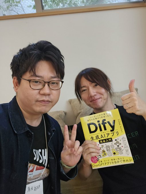 >lemilemilemio 安野貴博さんにDifyで作る生成AIアプリ完全入門を献本させていただきました!!
