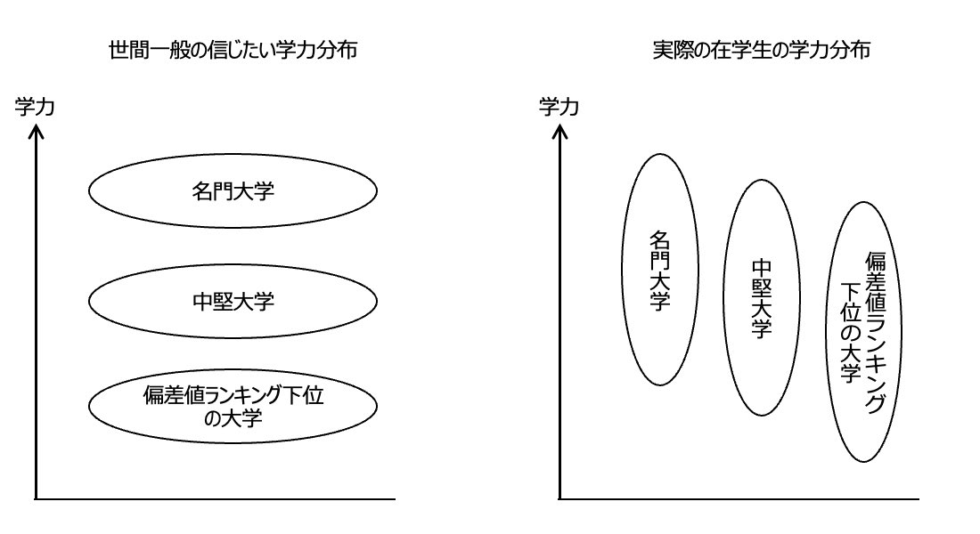 >ProfMasuda 大学の偏差値によるランキングと、そこに在学している学生の学力の関係は、多くの人のお気持ちに反して、偏差値ランキング上位の大学でも学力の底は抜けていますし、一部の大学歴にしか拠り所のない残念な人からFランなどと揶揄される偏差値ランキングで下位の大学にも学力の高い学生は普通にいます。