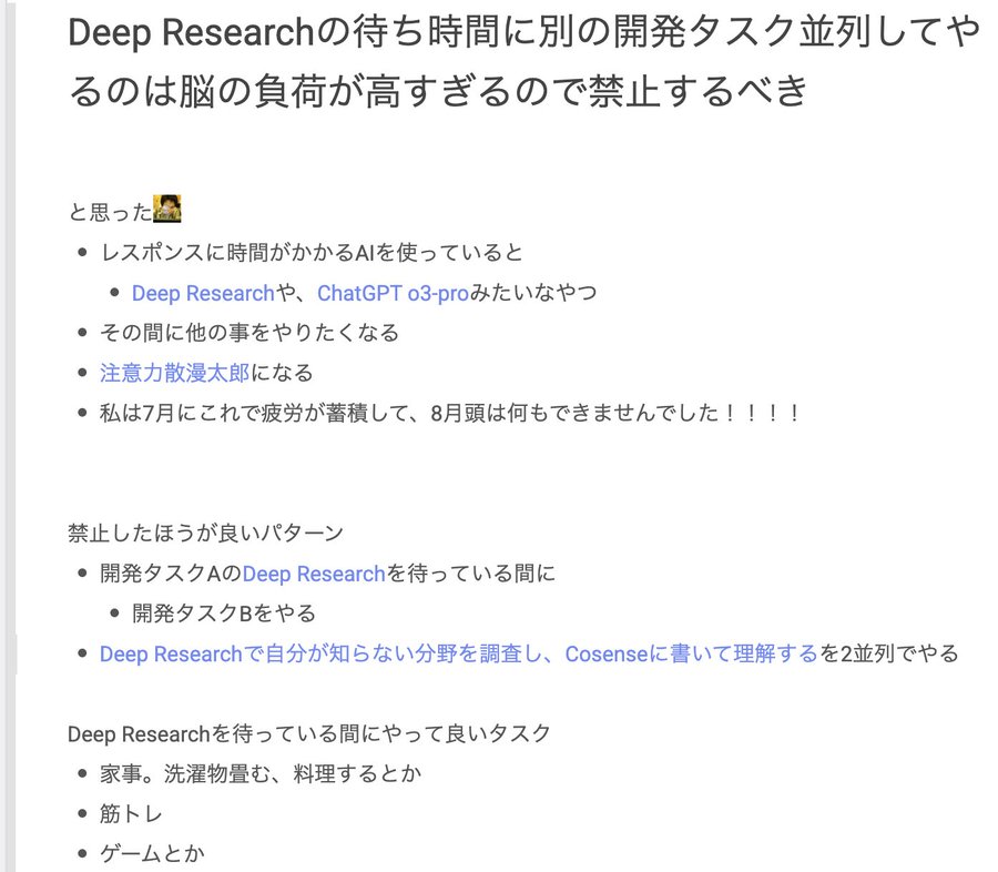 >nishio 振り返ってみると「自分の知的生産プロセスをメタ認知しながら高強度の負荷をかけてみる」という長年やってきた実験をまた今回もやってみたということなんだよね