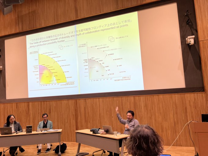 >nishio #TokyoPluralityWeek このスライドを見ながら英語を浴びていて唐突に腑に落ちたんだけど、Audreyが体現しているように実際に行動することが大事で、行動が欠けたらPluralityにはならないんだな、だからこんなに分刻みで世界中を飛び回ったりするんだなと腑に落ちた、行動が大事