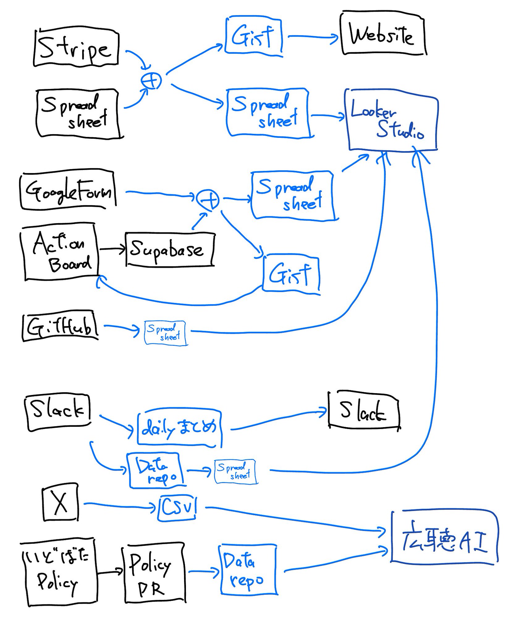 > nishio 自分が何をやってるのか自分でもよくわからなくなってきたので絵に描いてみた、なにかとなにかをつなぐ仕事をしていますw>