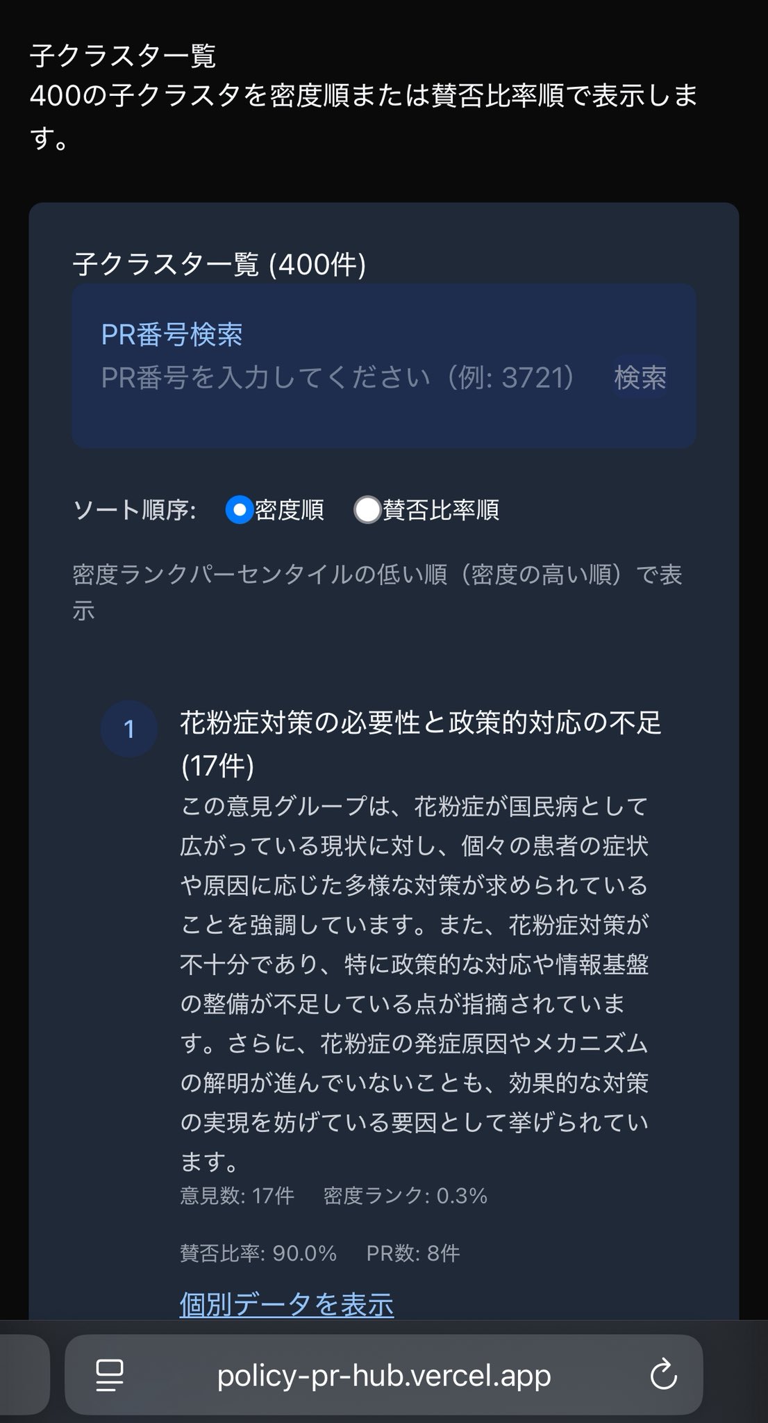 >5日間のXの投稿を1日ずつ広聴AIにかけるスクリプトが無事走り切った