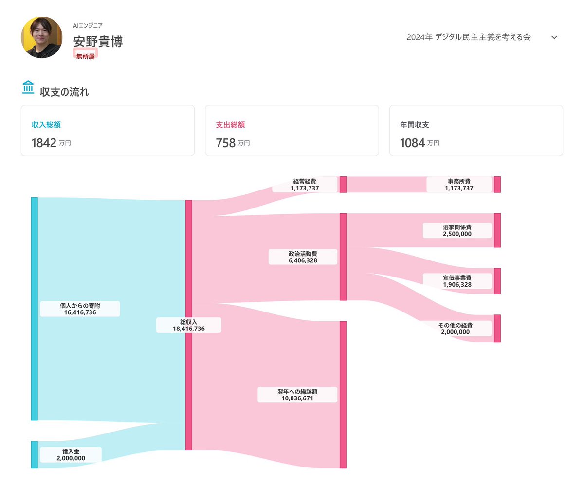 > すでに1円単位でお金の動きを見える化できてて、政治とカネ問題に切り込んでる