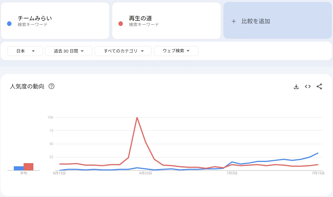 > 比例0~1議席予想の再生の道と比べてもここ1週間で明らかに伸びてる