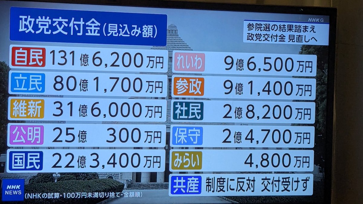 まあ共産党が受け取って公共財に投資するかどうかはさておき、受け取った各政党がいろんな目的に使ってる、どんな目的に使うんだろう、というところに注目が集まるといいなとは思っている。