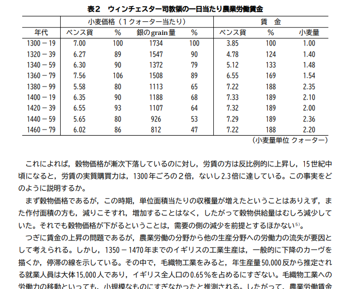 >黒死病による人手不足で「大陸各国と比較して大幅に実質賃金が高かったこと」を挙げてるんだよね。