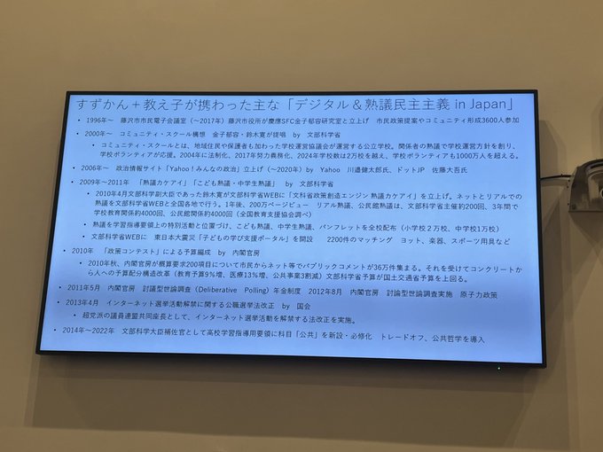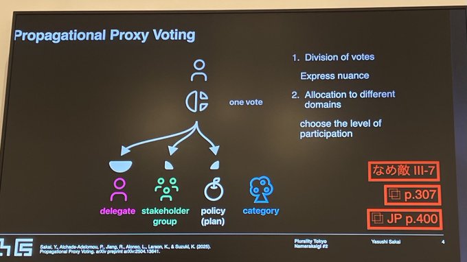 > ninofku Plurality Tokyo Namerakaigi #2 最高でした> 著者の2人の話はもちろん、トクヴィルなど思想的な背景や日本での熟議の歴史、社会実装の現状などなど大いに刺激を受けました> 日本が新たな民主主義の発信地になるべくコミュニティを盛り上げていきたいし、中央区内でも何か手を動かすことを始めます>