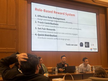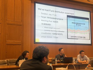 クアドラティック・ファンディングの参加型予算編成への応用や、コミュニティへの貢献度を可視化するシステム(ロールの付与)、デジタル災害対応チームへの資金提供などが紹介されました。