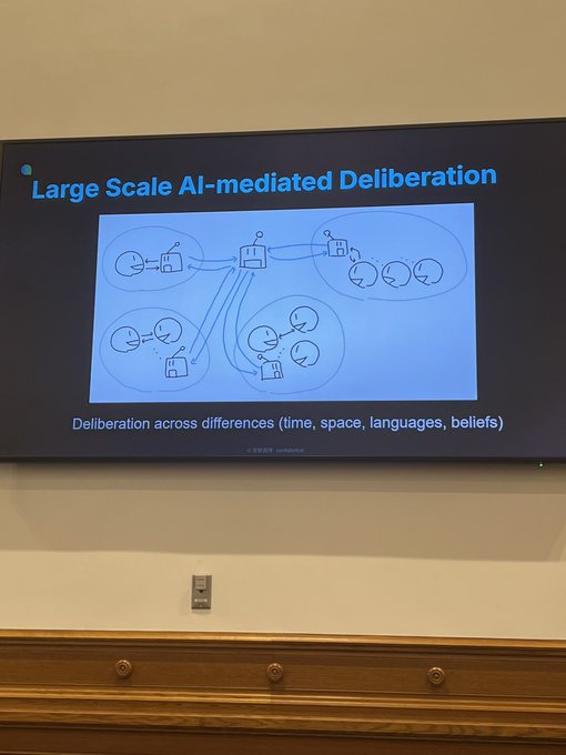 > nishio Audrey「この2年で技術が大きく進んだのはLLMによって意見の集約が容易になったこと。これによって熟議が改善する。特に言語バリアを超えて多様性あふれるコミュニケーションをすることができるようになった」 #TokyoPluralityWeek >