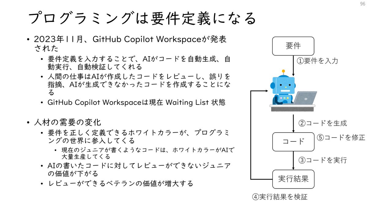 > 多くの仕事は「仕事をする過程で学べる」んだけど、簡単な仕事の振り先が人間ではなくAIに置き換えられるので、学べるチャンスが減る